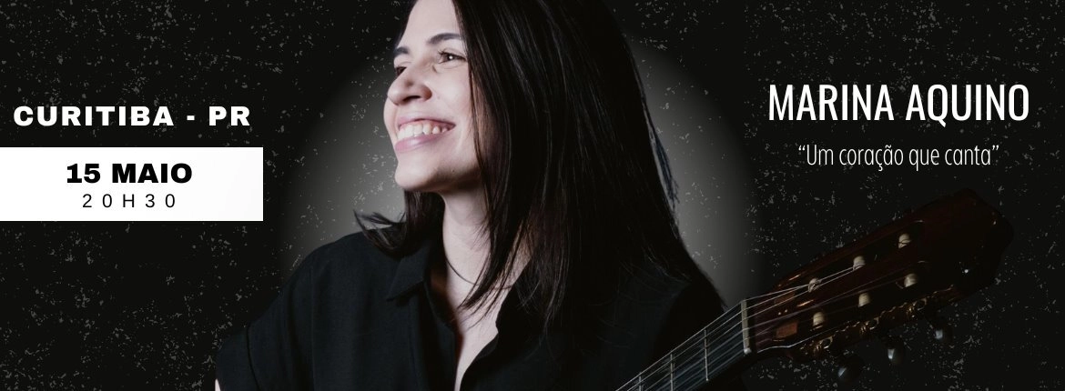 Marina Aquino estreia em Curitiba com o show “Um Coração que Canta” Dona de uma voz doce e carismática, Marina Aquino faz sua aguardada estreia na capital paranaense com o show “Um Coração que Canta”. Ela conquistou uma imensa audiência nas redes sociais, que somam mais de 2 milhões de pessoas conectadas à sua forma sensível de interpretar as canções. Agora, depois de emocionar nas telas, ela promete encantar também nos palcos. Marina apresentará um repertório que une canções autorais e grandes clássicos da MPB, em um formato acústico e intimista.